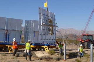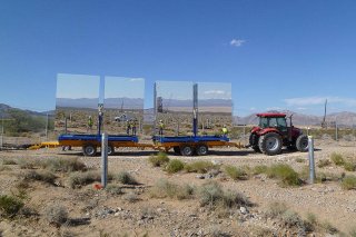 Once they’re completed, heliostats tend to be taken off to the mirror area with tractors. Into the foreground, and reflected in mirrors, will be the articles they'll certainly be mounted to.