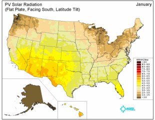 The below images indicates that number of solar power irradiation that falls on the different surfaces throughout the United States based typical environment situations.